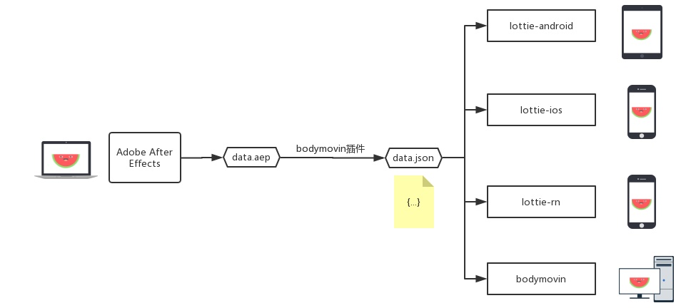 前面已经提过 Lottie 是 Airbnb 开源的一个动画渲染库。我们可以理解为它是一个多功能的视频播放器,开发人员需要将这个播放器部署到相应的环境中。然后设计人员提供视频(动效文件)给开发人员,让开发人员按照要求播放视频文件,即可完成动效的应用。