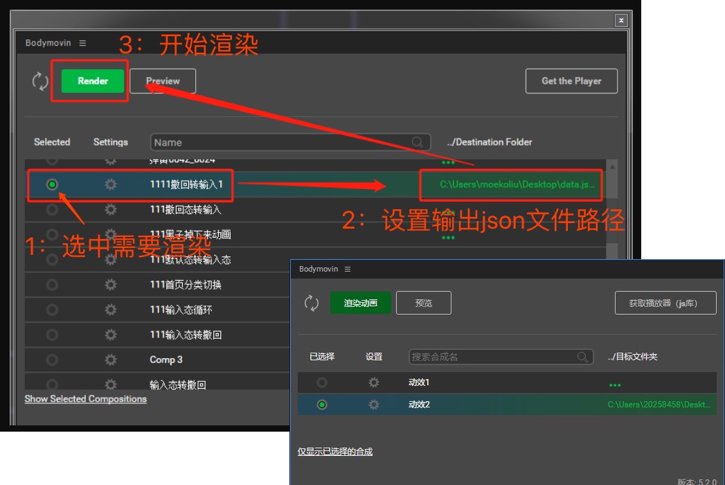 2、使用Bodymovin 导出Json 数据, 程序可直接使用~~