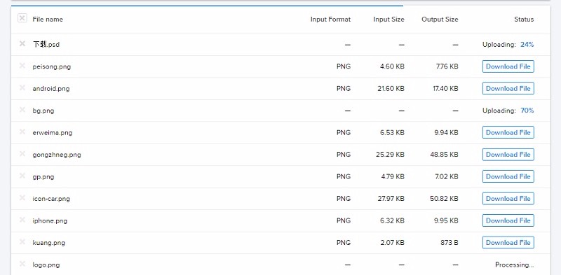 支持多文件、多文件格式同时压缩,JPG、PNG、GIF、PSD、SVG等等文件格式