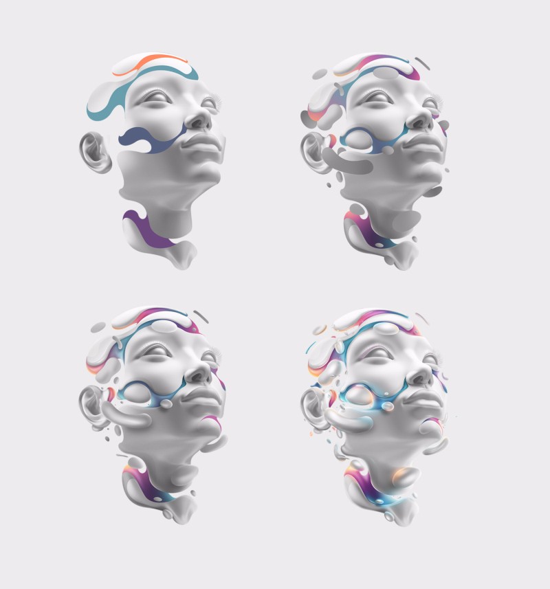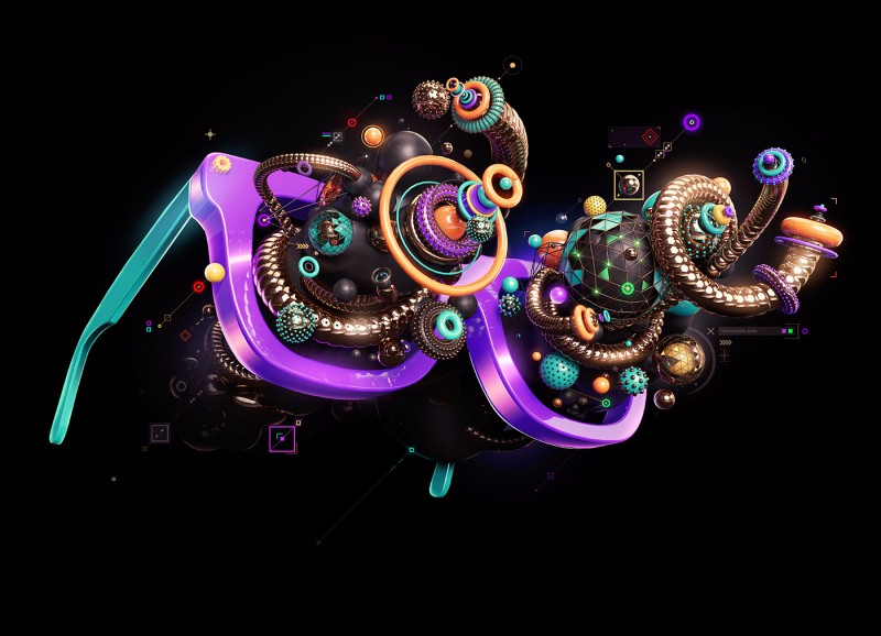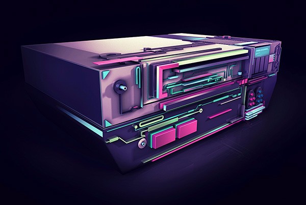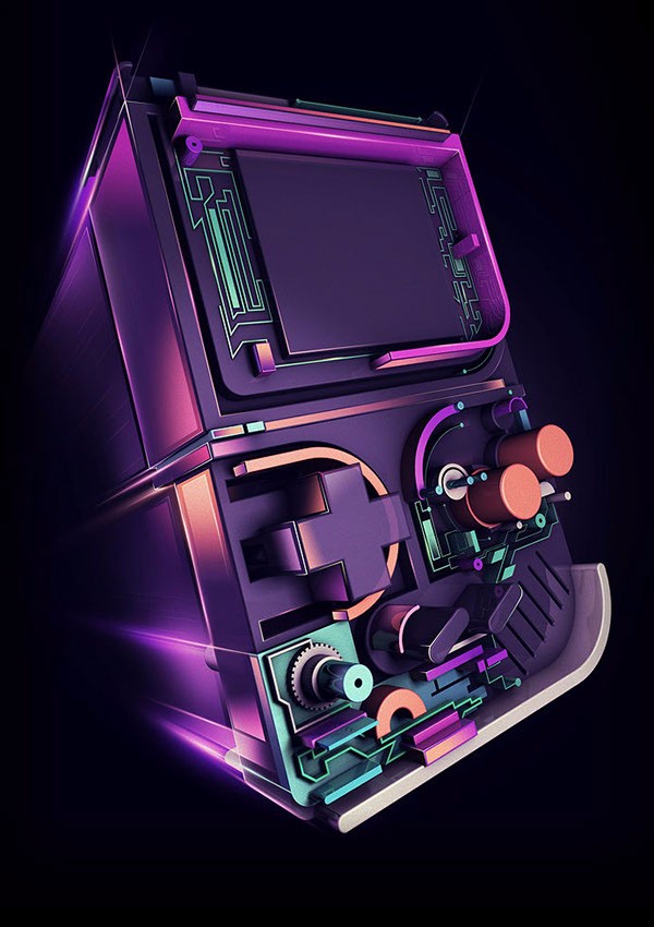他最近好像在玩一组很酷的设计,给冰冷的科技感加点霓虹灯的温度。