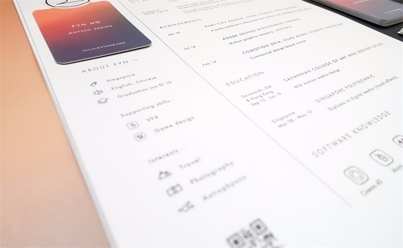 简历展示比较有意思,左边是个人信息,右边是工作经历。特别有意思一个点子就是个人信息卡片,是可以撕下来的,撕下来之后就像一张名片。如果你面试时候制作这么有意思简历,我相信这份简历让你在面试中加分。