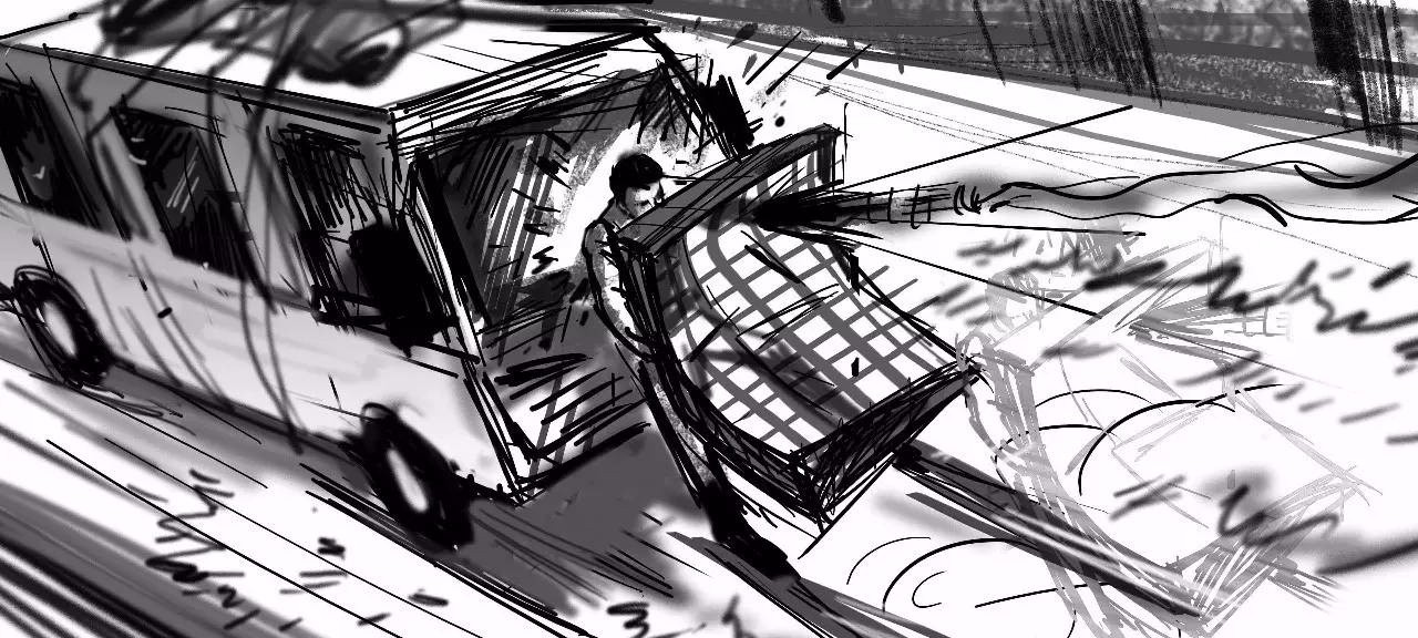 这次《战狼2》的故事板设计,因为时间太紧,还有自己的大片经验能力有限,甚至不足,画工也无法达到又好又快,导致有些为了故事板而故事板的嫌疑。