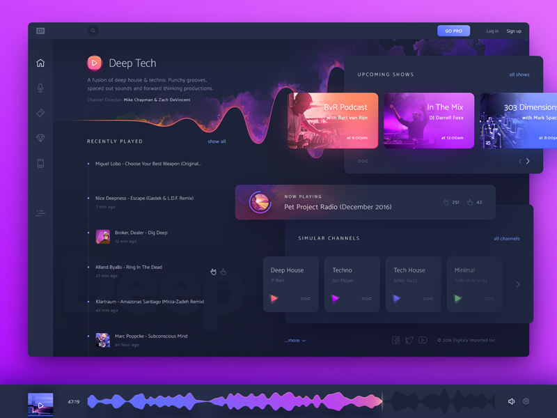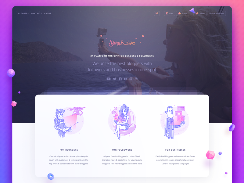 他叫uixNinja,当你第一眼看到他作品时候就被吸引了,他是多么喜爱紫色,才能够把紫色渐变做到如此完美。其实,在“优波设计”网站经常会推荐他的作品在首页给大家,相信有经常使用优波设计网址导航的设计师们对他应该不是陌生。