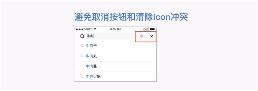 下图是某App的截图,需要注意取消按钮的形式,避免与清除icon冲突,引起用户困惑。
