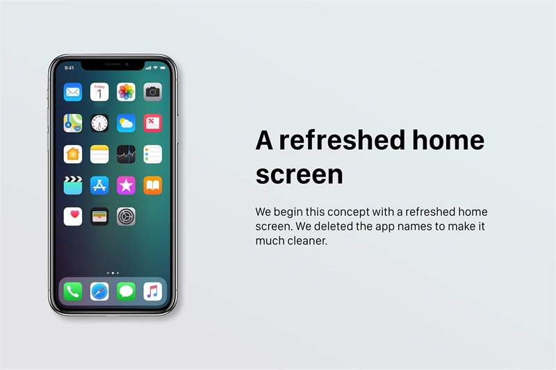令人惊讶的是,在概念图中 iOS 12 的应用只有图标,隐去了应用名称,通知方式也会相应做出改变,在视觉上给人的感觉就是两个字:干净。