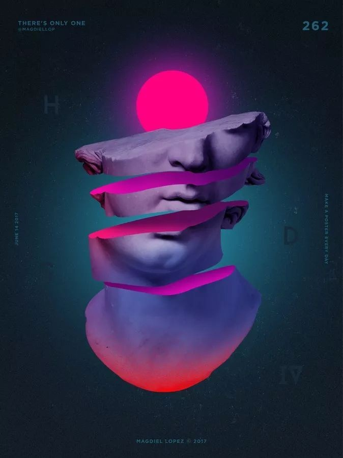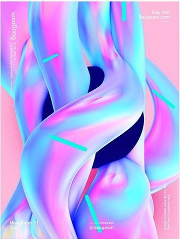 与上述AR趋势类似,我们期望更多设计师将3D图形,特别是动画与平面2D设计融合在一起,就像天才设计师Baugasm在他的海报系列中完成的那样。