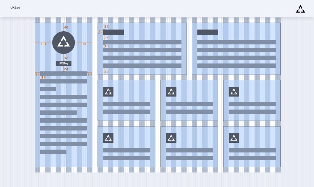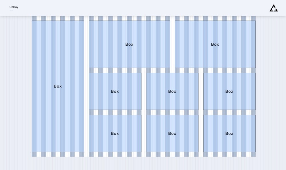 建立好栅格系统后,就可以根据自己的实际业务,在栅格系统上安排内容了。页面上最终承载内容的其实是一个个「盒子(Box)」,这个盒子的高度由盒子要容纳的内容与页面版式设计决定,按8n规律变化;宽度则由栏目与水槽按比例组合得到。