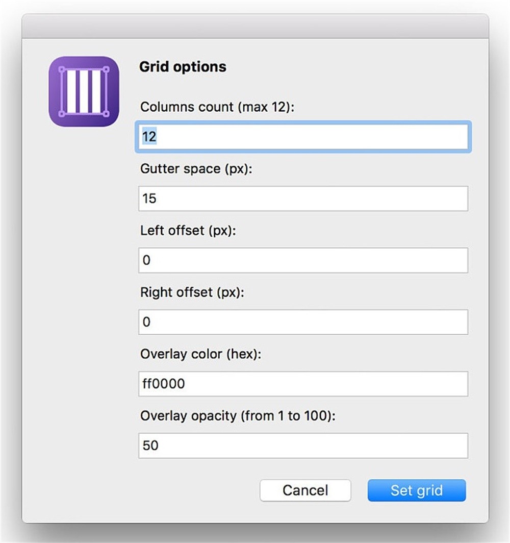 Sketch自带栅格系统设定:Layout Settings