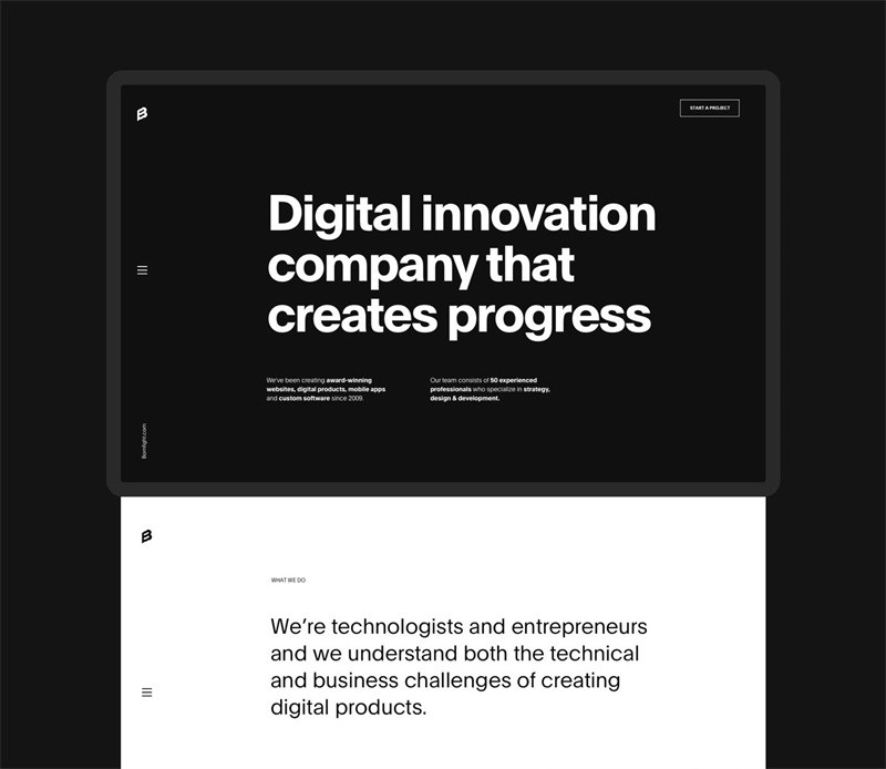 字体开始变得越来越大,这是我们每年都能发现的趋势。但当你使用大字体的时候,应当留意配合极简主义使用,否则设计可能会过于拥挤,失去了原有的意义。