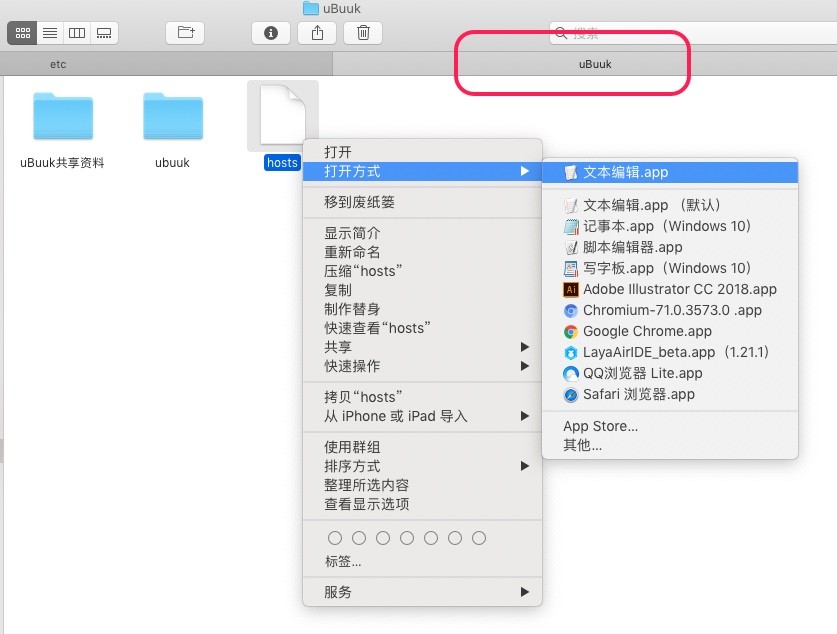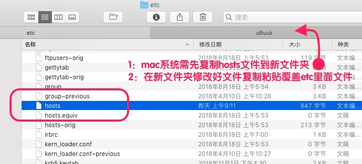第二步:mac系统不能直接在etc文件夹下修改hosts,需要复制到另外一个文件夹里面,使用文本编辑器修改好