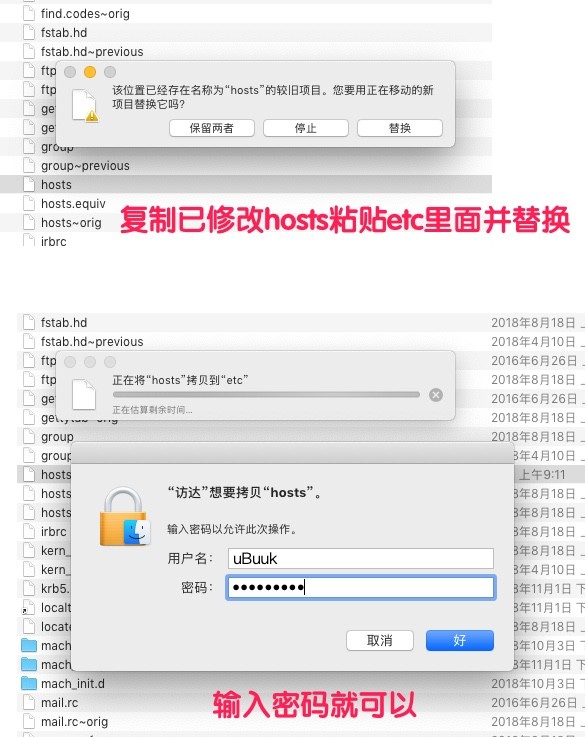 第三步:将修改好的hosts复制粘贴到etc文件夹下,并替换即可
