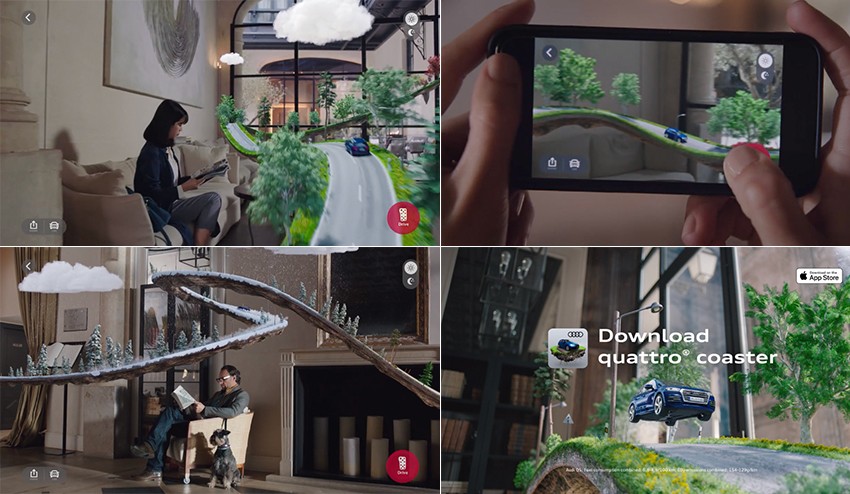 这是奥迪利用AR技术的项目,它能让消费者将汽车从银幕上带到自己的位置,从而积极体验开车的感觉。