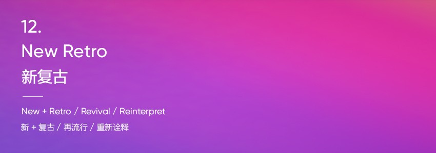 趋势不会朝一个方向发展,它可以扩展成各种各样的方式,就像我们看到的反映了最新趋势的3D、AR/VR技术也包含了复古风格一样。我们希望这些不同的趋势能以新的方式被应用,从而创造出新颖而有趣的设计。