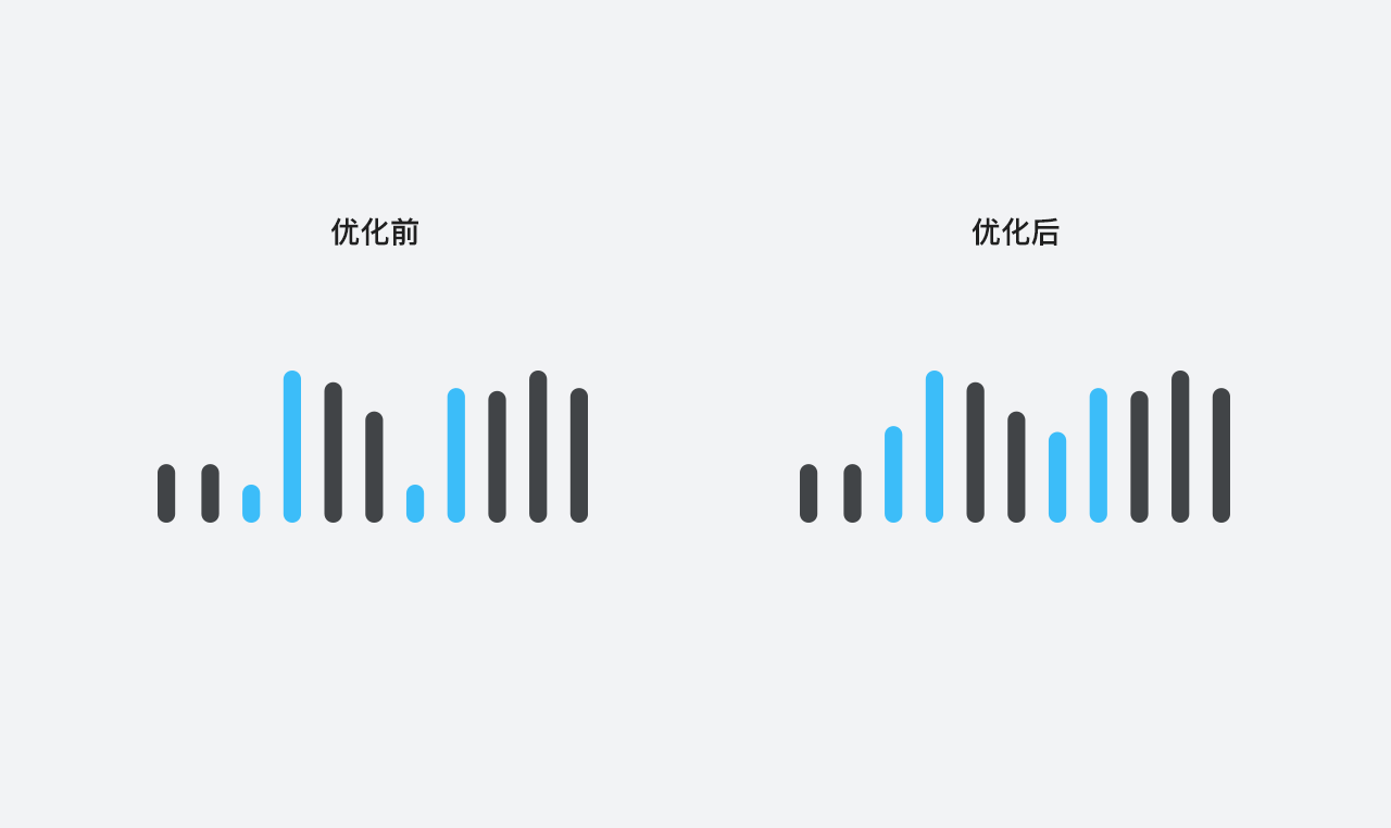 呈现准确音量的声纹无法满足我们预期中的流畅视觉体验,反而会让用户感觉到多变声纹信息带来的压力。回归设计目标,声纹是为了帮助用户识别有效语音片段,因此有声音和无声音的声纹对比很重要。这也意味着对于正常音量区间的声音,我们可以适当牺牲准确性以确保良好的视觉体验。