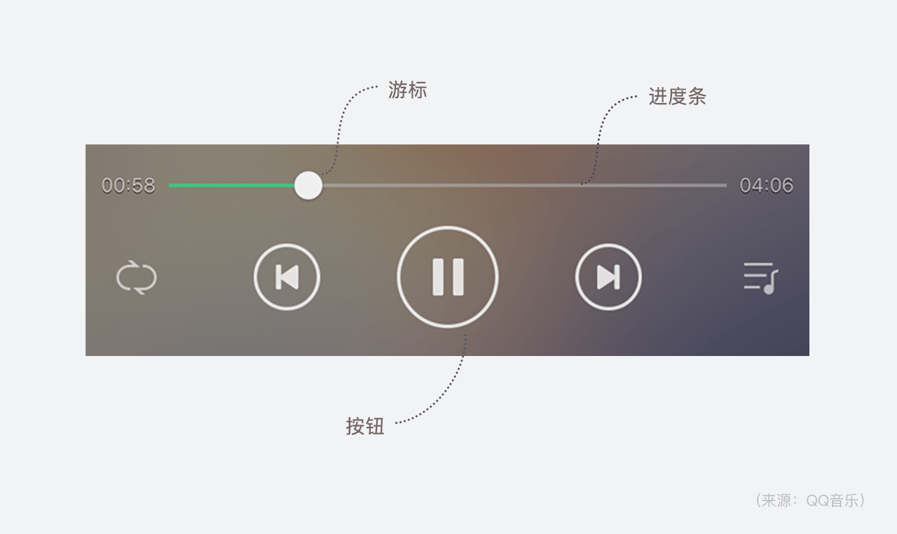 QQ拥有广泛的用户群,所有功能都要尽量降低用户的学习成本。更何况由于没有其他国民级APP的相似特性可以类比,对用户来说语音进度调节不只是一个新功能,更是一种新模式。在这种背景下,功能的易学性显得尤为重要。怎样让用户一眼就明白语音消息可以暂停并拖动呢?怎样让操作更加直觉化?我们不妨从用户熟悉的事物入手,进行联想。