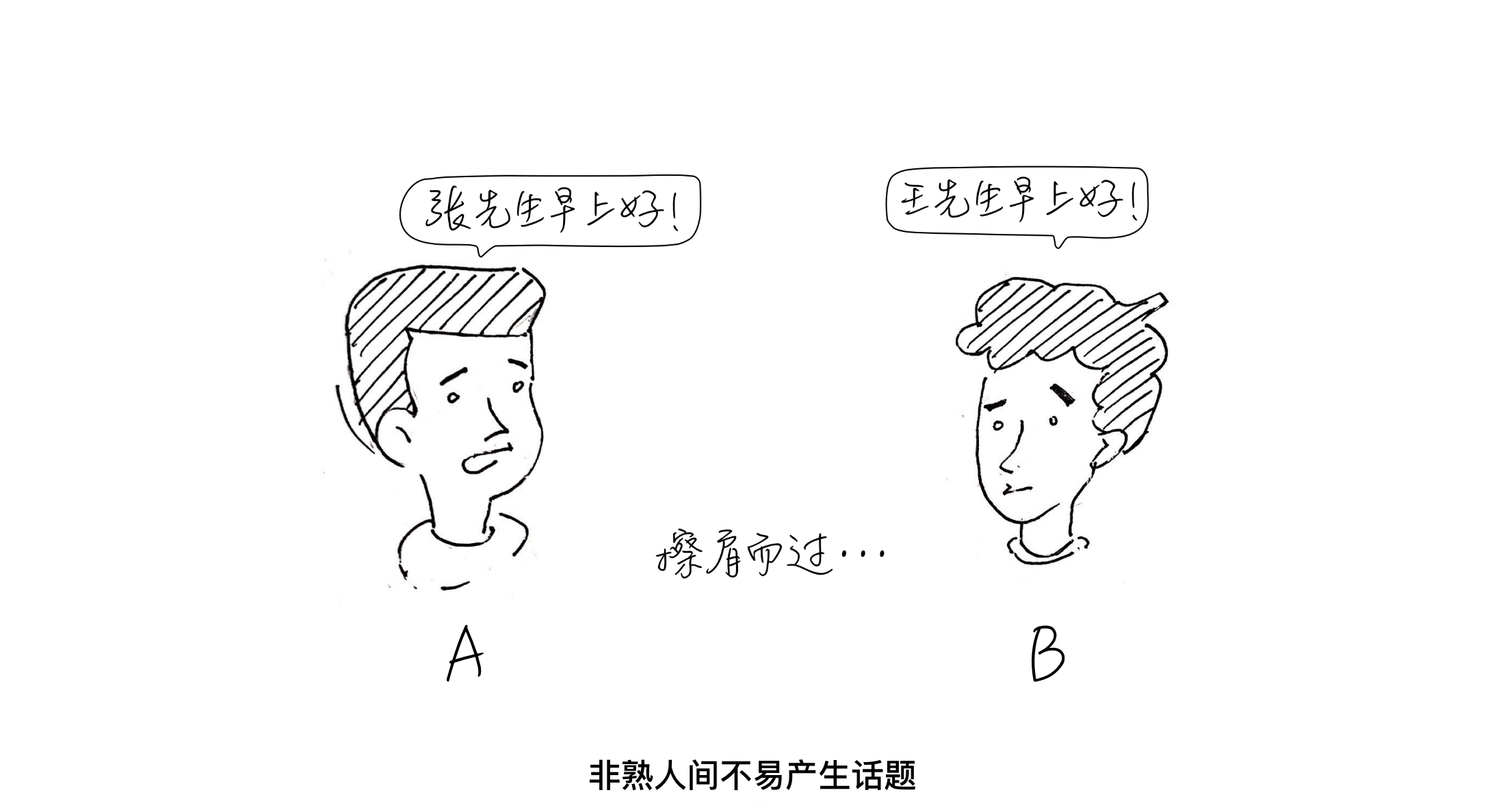 这是一个很常见的熟人互动案例,我们可以看到,熟人间很容易产生话题,并持续互动下去。但是如果同样的话题发生在不是很熟悉的人之间,可能就会是另一番场景: