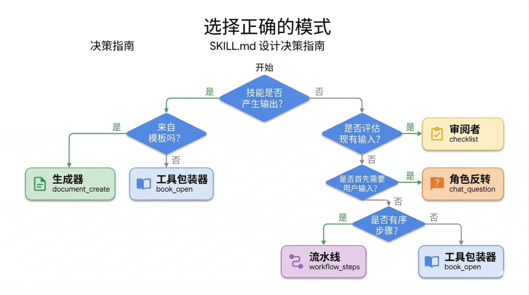 Google 在观察了大量生态内的实践后,将常见的设计思路归纳为 5 种 Skill 设计模式。