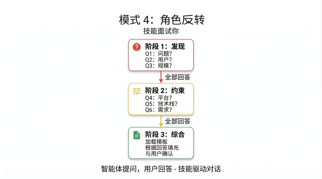 在这个模式下,Skill 就像一位尽职的“项目经理”,发现信息缺失就会停下来主动找用户要,拿到所有信息后再老老实实按模板填空。