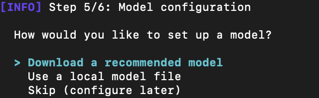 ✓ Model configured: Qwen3.5-0.8B-Q4_K_M.gguf via custom endpoint