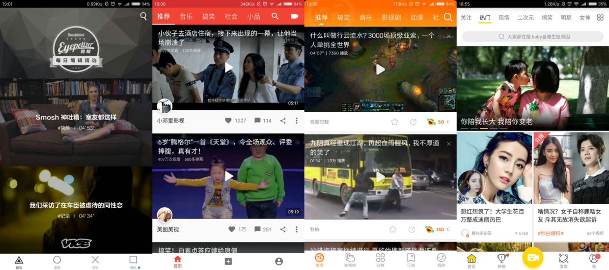 嗯,上边三个分别是快手、火山、美拍。我不说,你们自己区分吧。