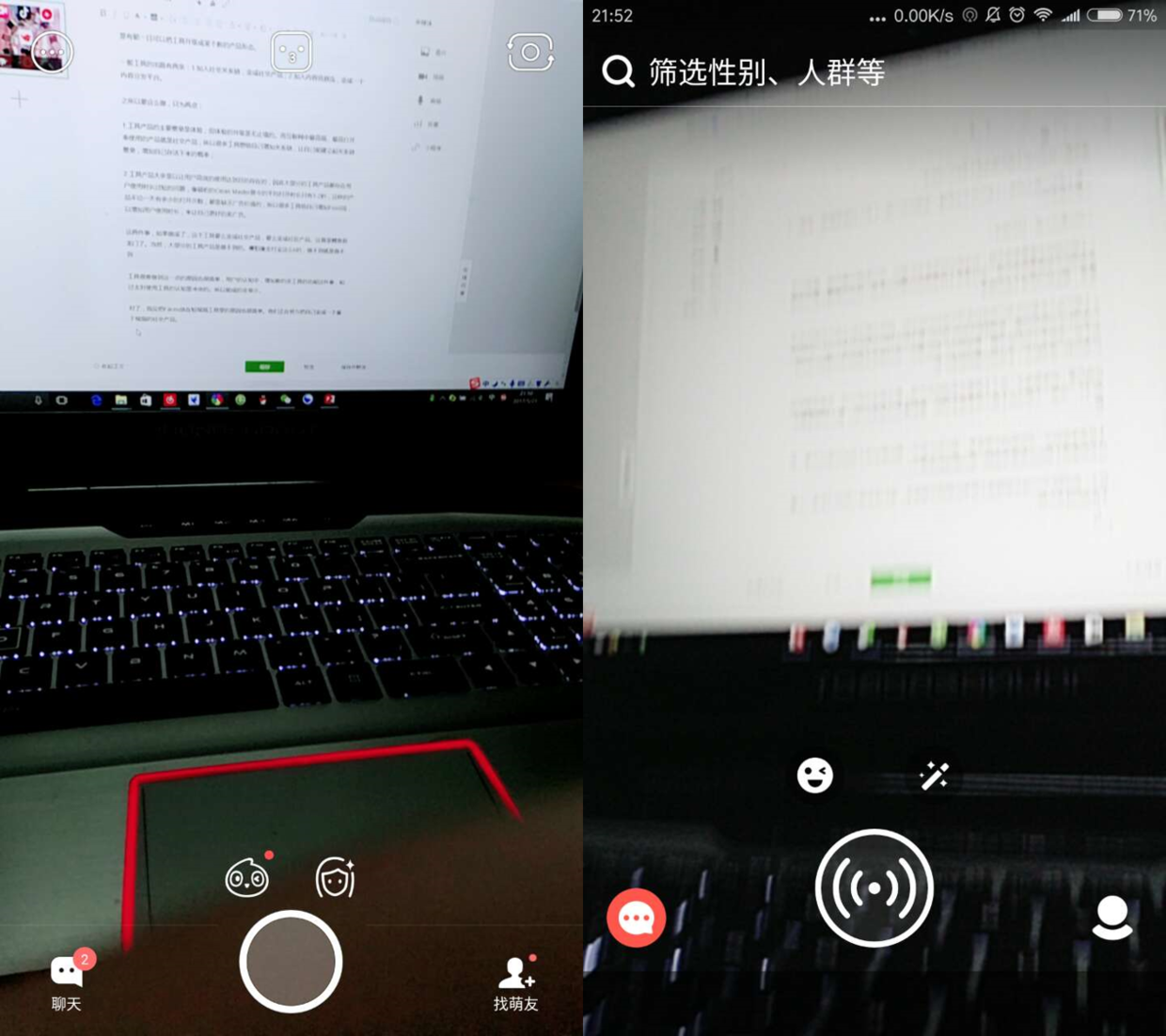 这里要特别注意一点,从工具类产品的发展路径我们已经可以发现一些端倪。短视频工具有个天生的优势,就是一定会生产出内容,而内容本身要么可以直接被使用,要么就是可以用来服务社交。比如Faceu作为短视频工具的时候,就生产了大量的“可爱的脸”这样的短视频内容本身是服务社交使用的。而Monkey也好,Tiki也好,这样基于视频直播的社交产品,都有个“照镜子”的设计。而这个设计本质上和Faceu的底层逻辑是一致的。