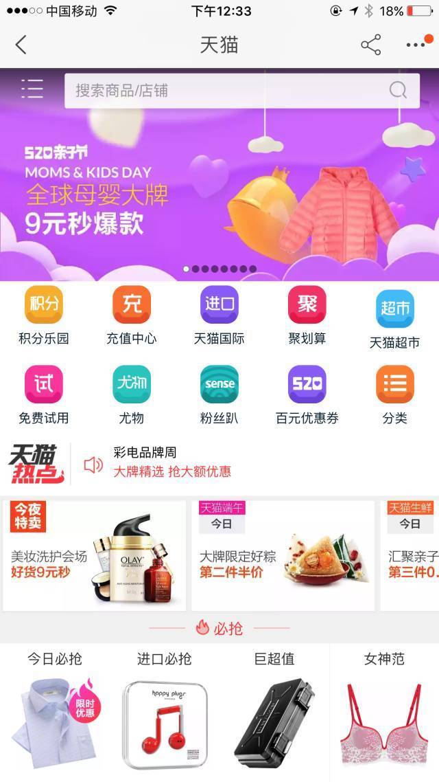 有段时间没登录天猫移动端了,今天想着去马云爸爸家买点东西,一打开,哇塞,居然改版了,而且改动的还挺大!相对旧版来说,新版做了极大的瘦身工作,更加明确了品牌定位,不仅做了瘦身,而且连slogan都改了,改版前叫“上天猫,就够了”,改版后叫“理想生活上天猫”。。更加和之前的版本拉开了差异化。